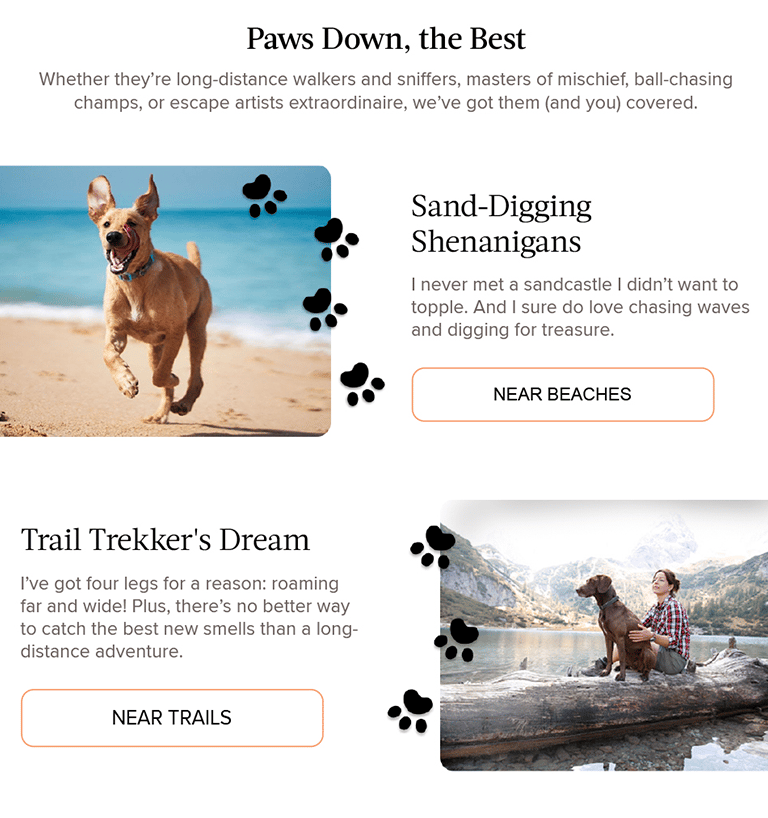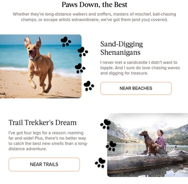 Pet-focused campaign highlighting destinations designed for travelers and their four-legged companions.
